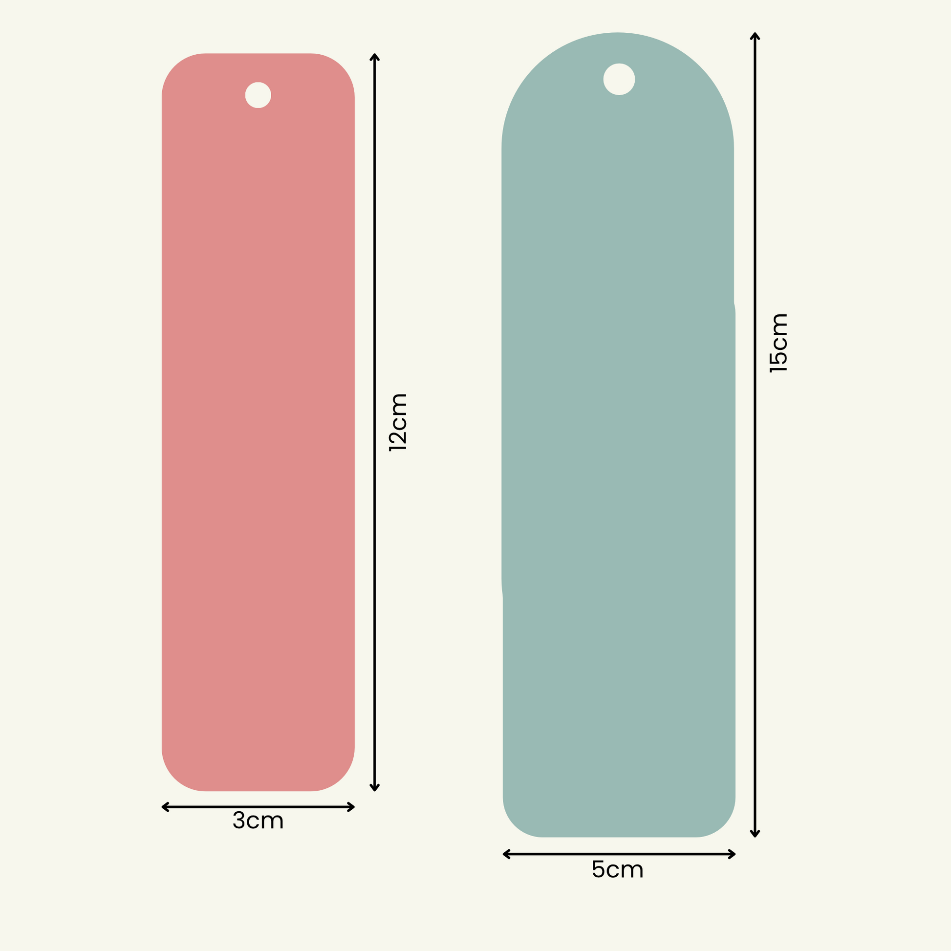 -afmetingen rechthoekige boekenlegger: 12cm x 3cm