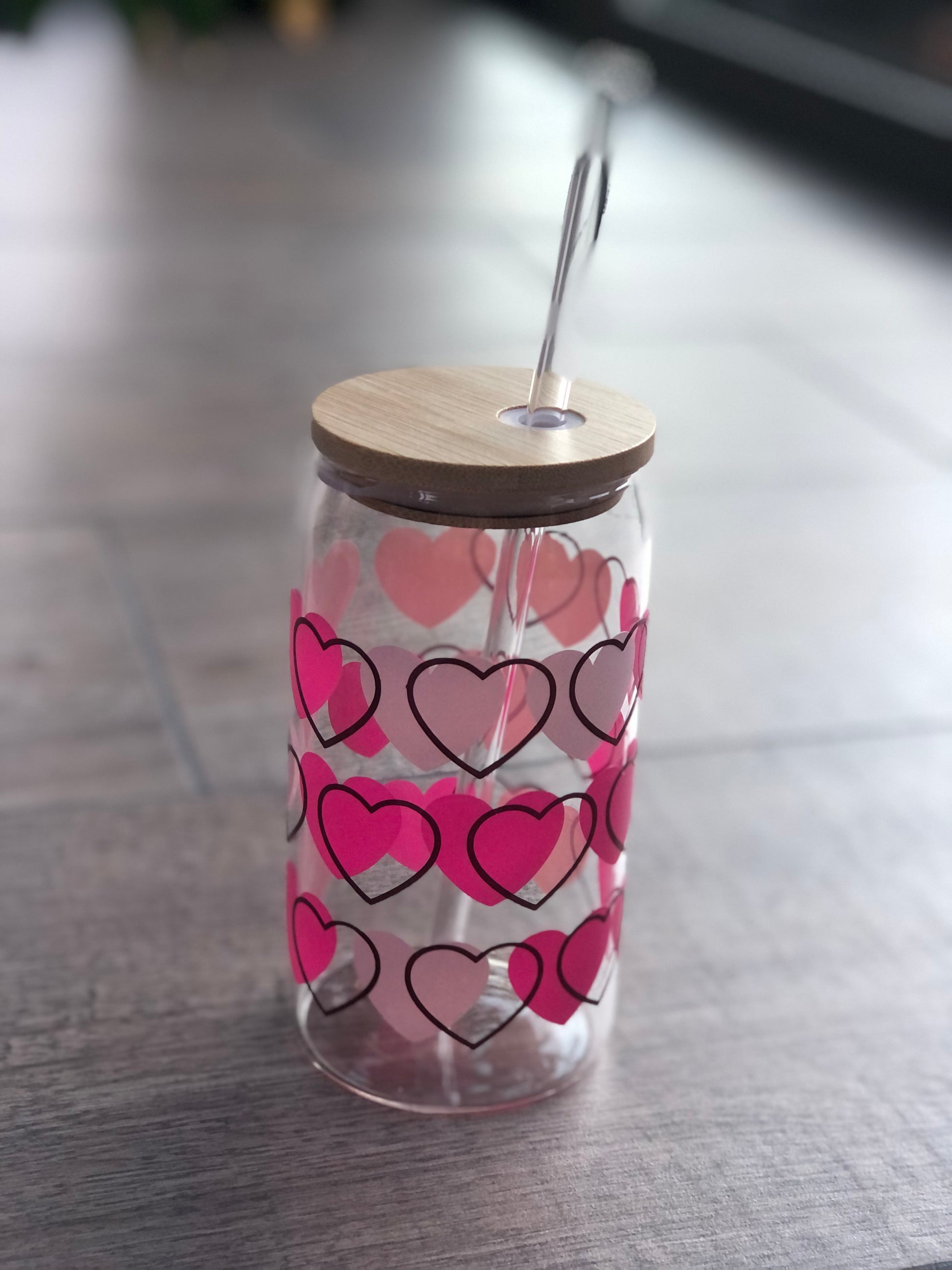 -Glazen drinkberken met glazen rietje en bamboe deksel.