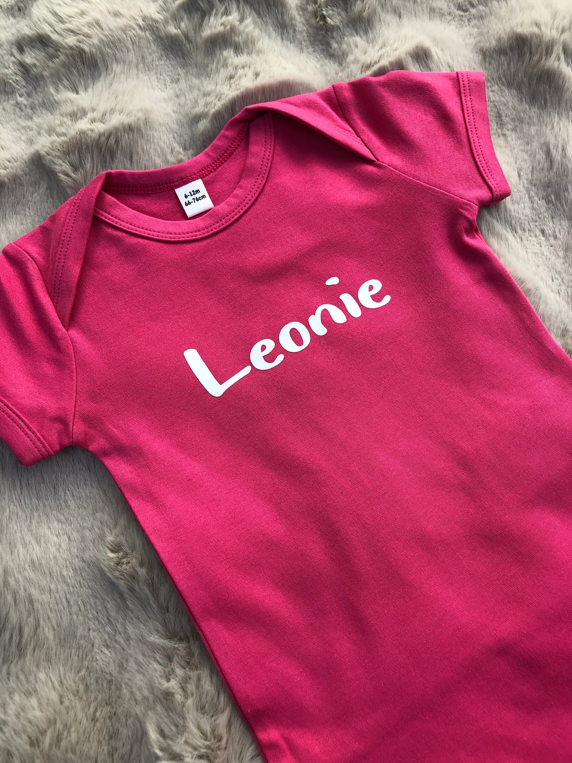 De kleur van de romper, de tekst en ook het lettertype kan je zelf kiezen.